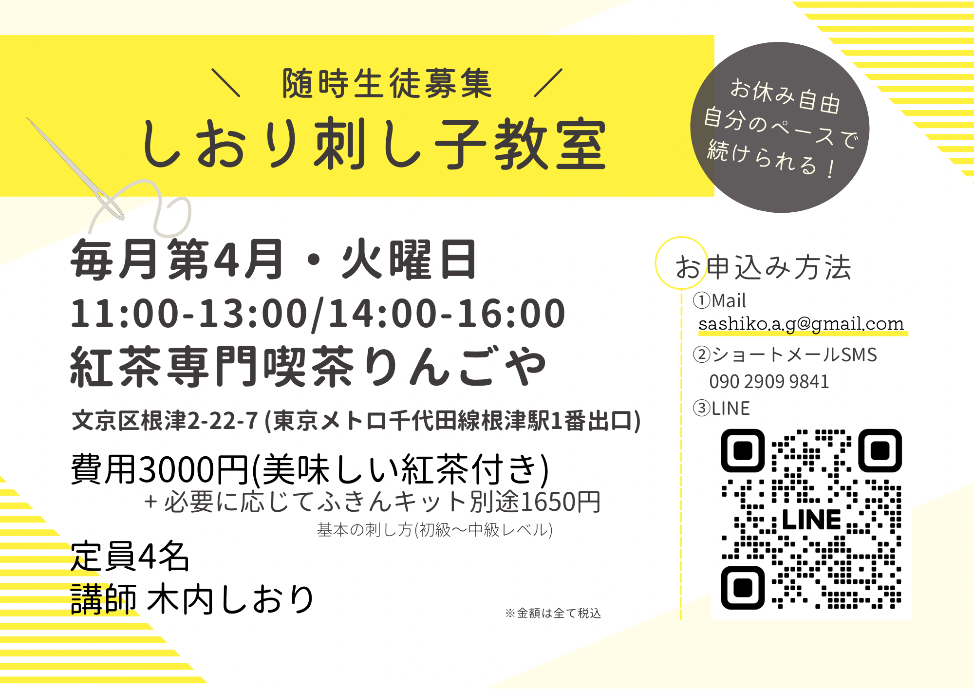 刺し子教室 第4月曜日・火曜日(午前/午後)